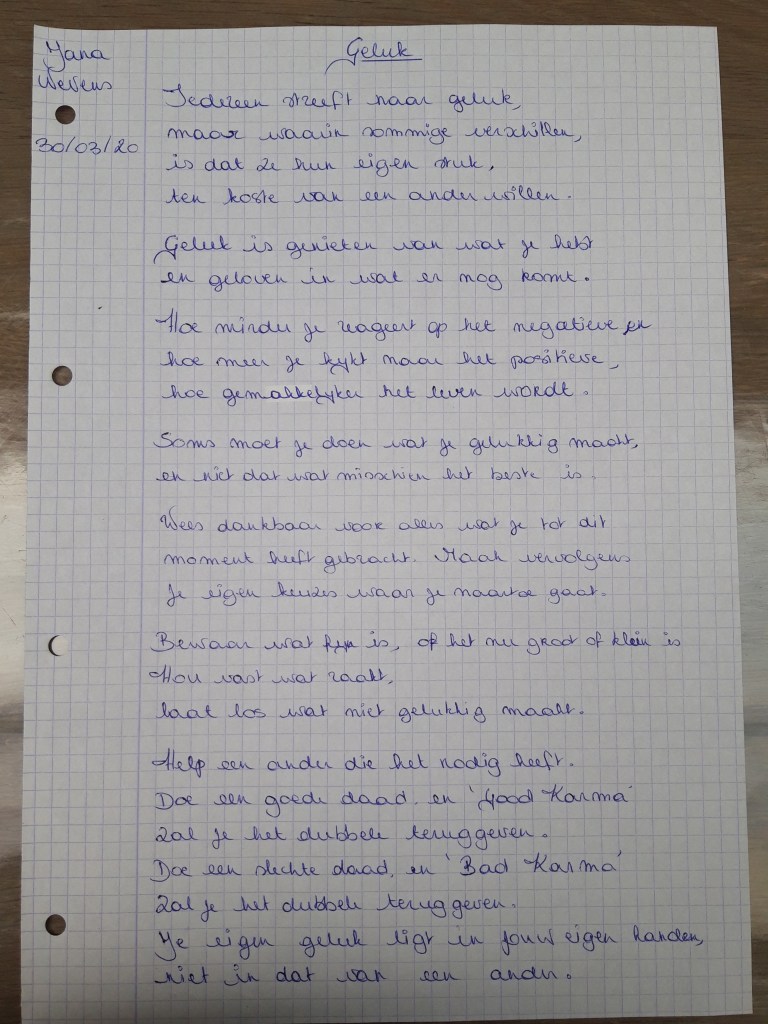 Jana Nevens, GELUK Afbeelding Posted on maart 30, 2020 by ginobombekekul Dit delen: Klik om te delen op X (Opent in een nieuw venster) X Klik om te delen op Facebook (Opent in een nieuw venster) Facebook Vind-ik-leuk Aan het laden... Gerelateerd