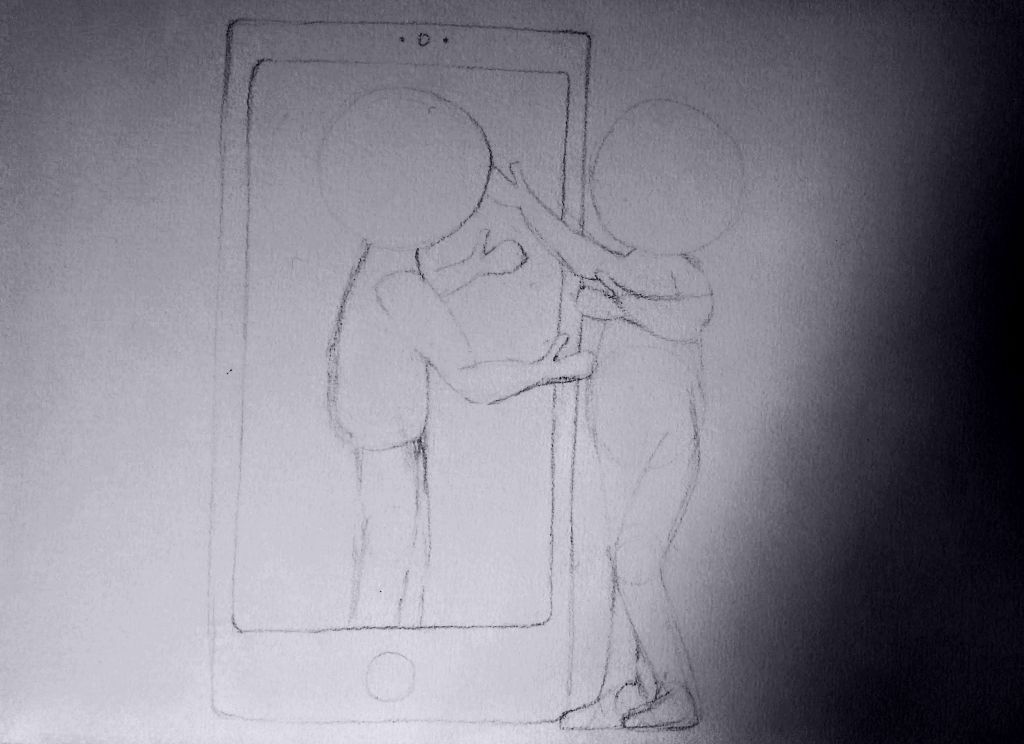 Mijn tekening gaat over het feit dat dit nu zware tijden zijn, je ziet familie, vrienden en belangrijke personen nu niet meer. Maar door dat we met elkaar kunnen facetimen, Skypen en zo, blijven we elkaar toch een beetje zien en spreken. Zo hebben we de mogelijkheid om nog van elkaars grappen, gebeurtenissen en glimlachen te genieten vanuit je eigen kot waar we nu toch voor een tijdje in vast zitten. Deze tekening gaat erover dat we elkaar een ‘virtual hug’ geven, en dat we nog altijd steun, vriendschap en vooral liefde bij elkaar vinden. Ook in tijden van het Corona virus.